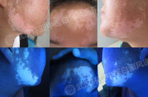经过系统治疗后,白斑病情稳定,再施以黑色素细胞培植术,效果非常明显。来医院复查时,额部、脸颊的白斑基本消失,患病部位的颜色与周围正常皮肤的颜色无差别。