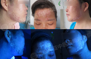 两年前,施女士发现额部出现白斑,自己就在药店买了些外用药擦拭。用药后白斑没什么效果,脸颊两侧反而也相继出现了白斑。